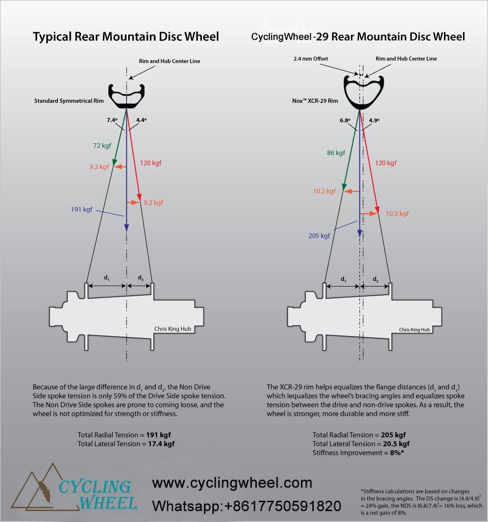 Asymmetry carbon rims can adjust the drive side and non drive side weight to balance.Mostly the drive side (especially for the rear wheel) because with cassette body and freehub chain etc,the weight is heavy a bit than none drive side,so we development the asymmetry carbon rim to adjust the wheel more than in the center.That means the rider can get more smooth,more balance of wheel.