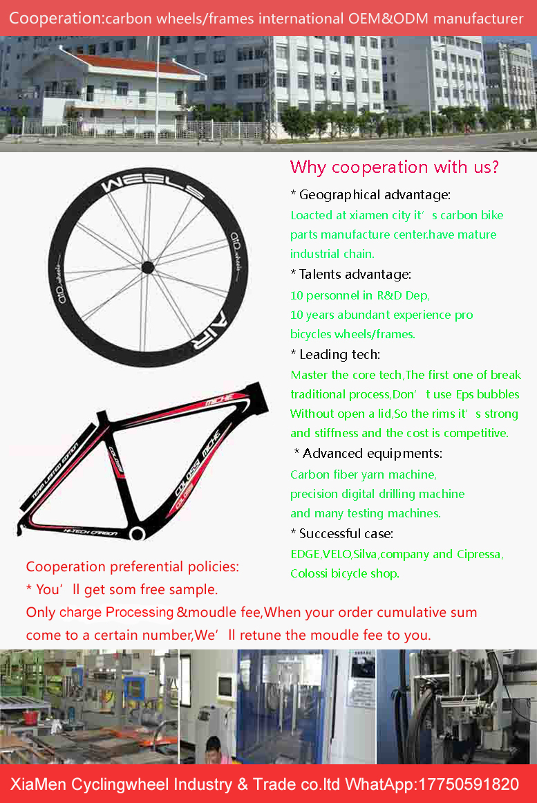Cycling wheel Industry & trade co,ltd was established in xiamen of China on 2014.It has a team with more than 10 years experience of manufacturing and development the carbon bike rims,wheelset,and other components. Professional R & D and sales carbon fiber bicycle wheels.Our mission is to create high-quality carbon fiber wheels with competitive price, The wheels are special design, with exquisite appearance.The rim with high strength and durable. The products’ life are beyond the average level of same industry.Through repeated experiments and practice, after improved the technologies and toolings of production, etc., It’s one of the earliest manufacture to breaked out the traditional technology, All the carbon rims with Aerodynamic tech (None with EPS foam technology), use disposable molding technology, overcome many factory need to with EPS foam tech,then after need to open a lid to take out the EPS foam.repaired,and need to pass through high temperature molding again etc problems;After tested,under the same weight of carbon rim, the compressive strength of none open-lid exceeds with open a lid more than 20%.Besides,after our professional process and special tech treatment the UD carbon rims’ appearance are very bright and clean,None with irregular lines.This is really hard for carbon rim processing.So our products with excellent appearance.Now we have more than 100 models of carbon rims & wheels (road/mountain/fatbike),.After sold we win unanimous praise from worldwide customers.At the end of 2020, our monthly Productivity and sales ability have already reached over 1000 pairs of carbon rims and wheelset.